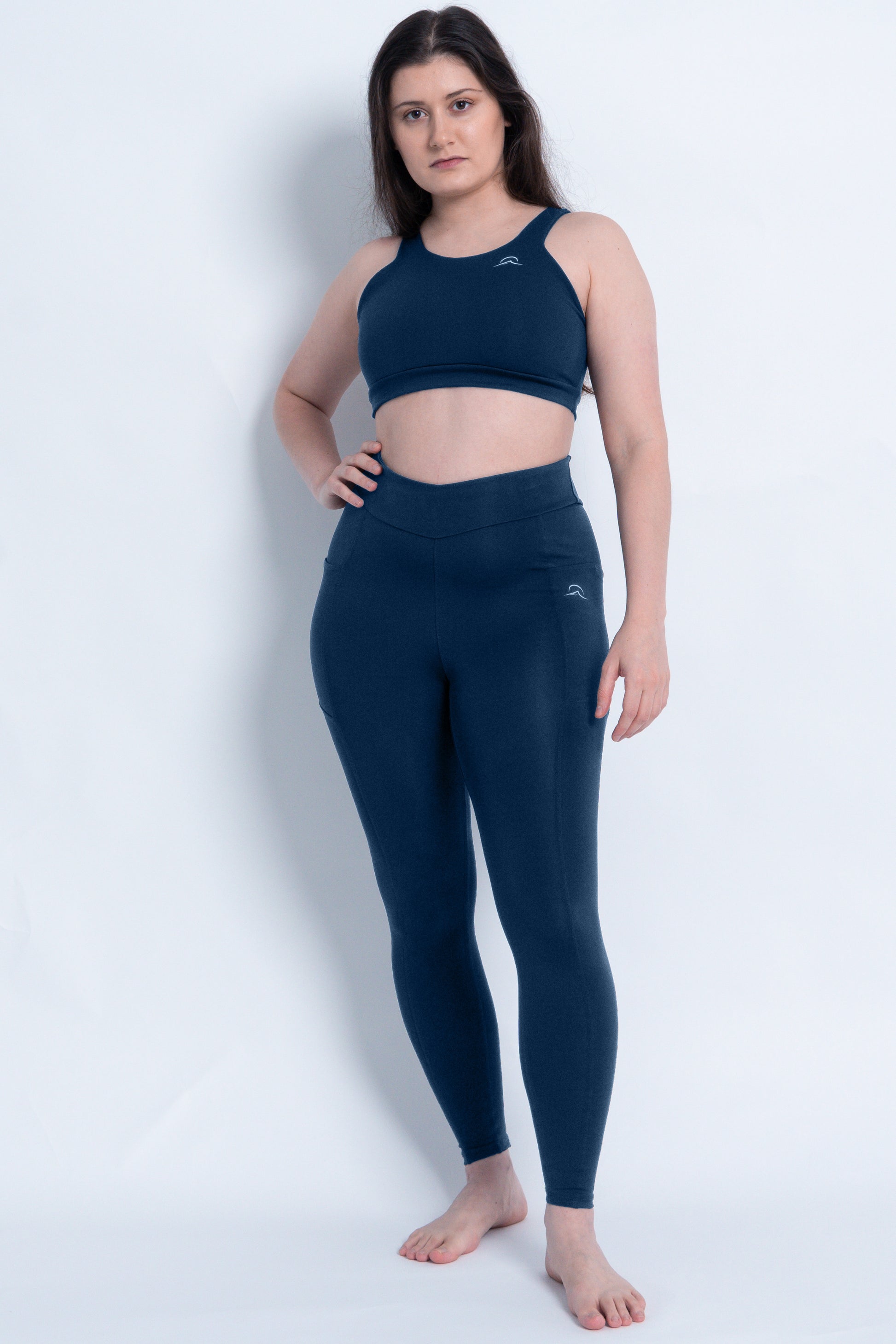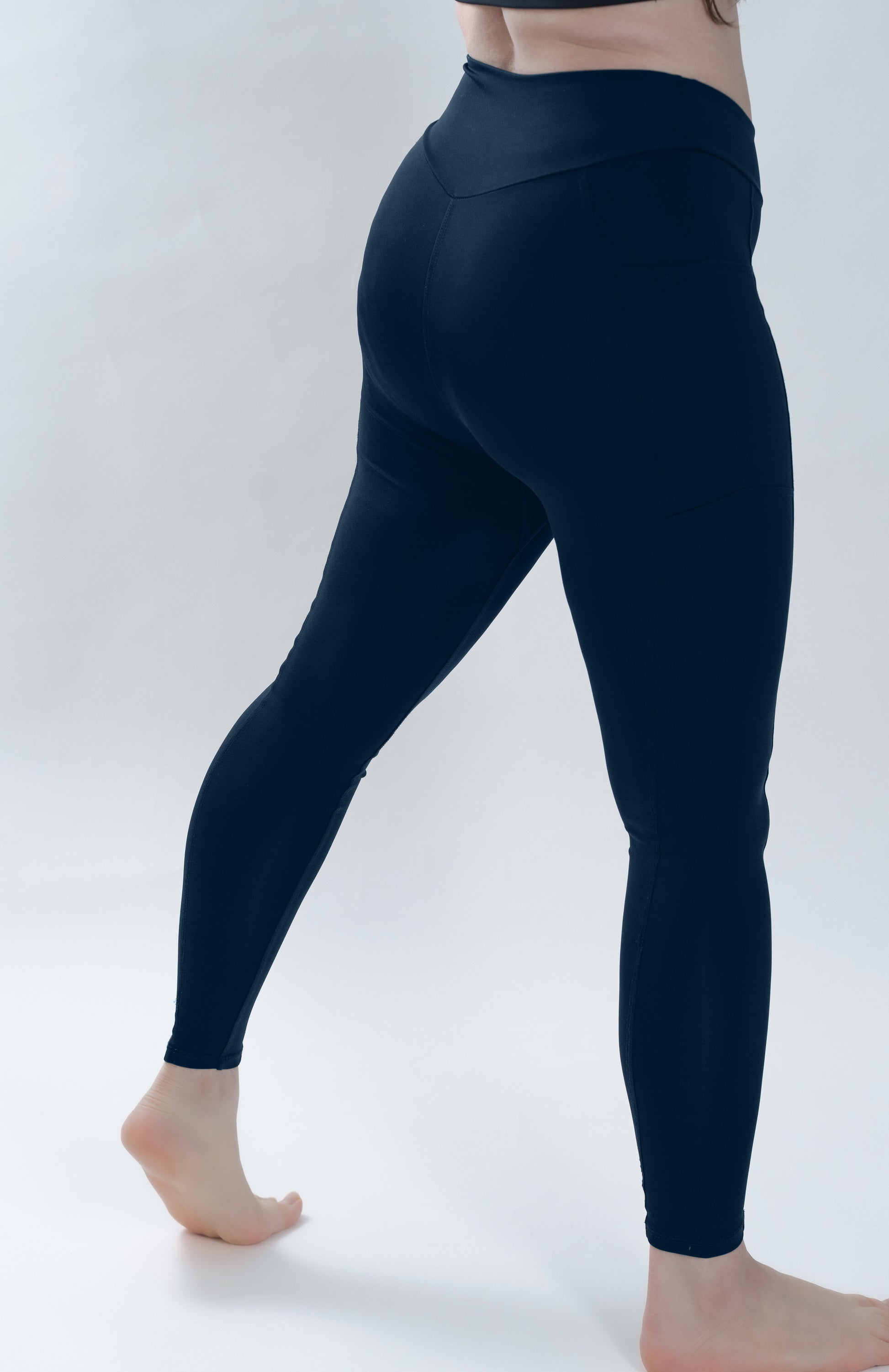 Dark Blue Leggings with Pockets and Subtle V High Waist