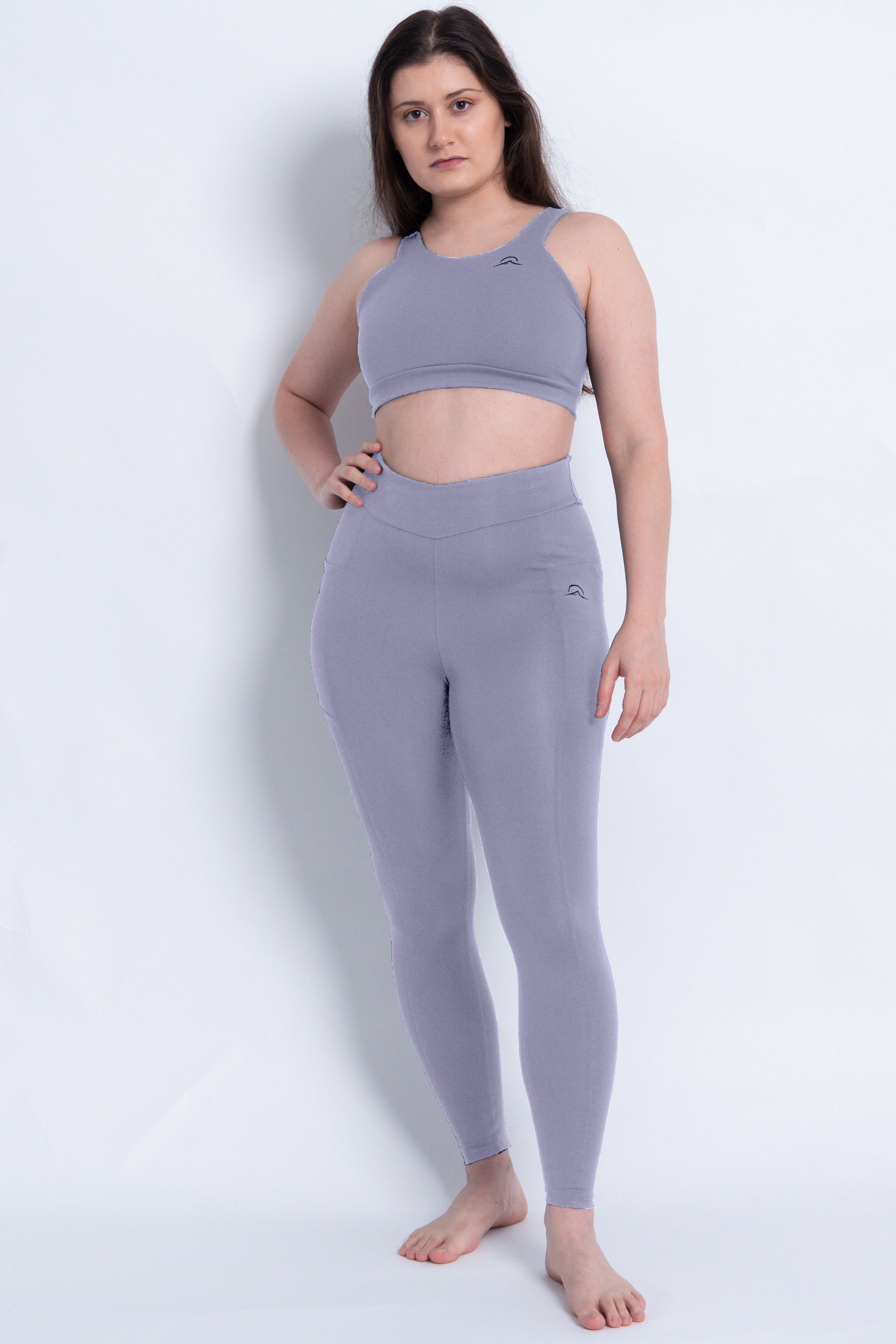 Lilac Grey Leggings with Pockets and Subtle V High Waist